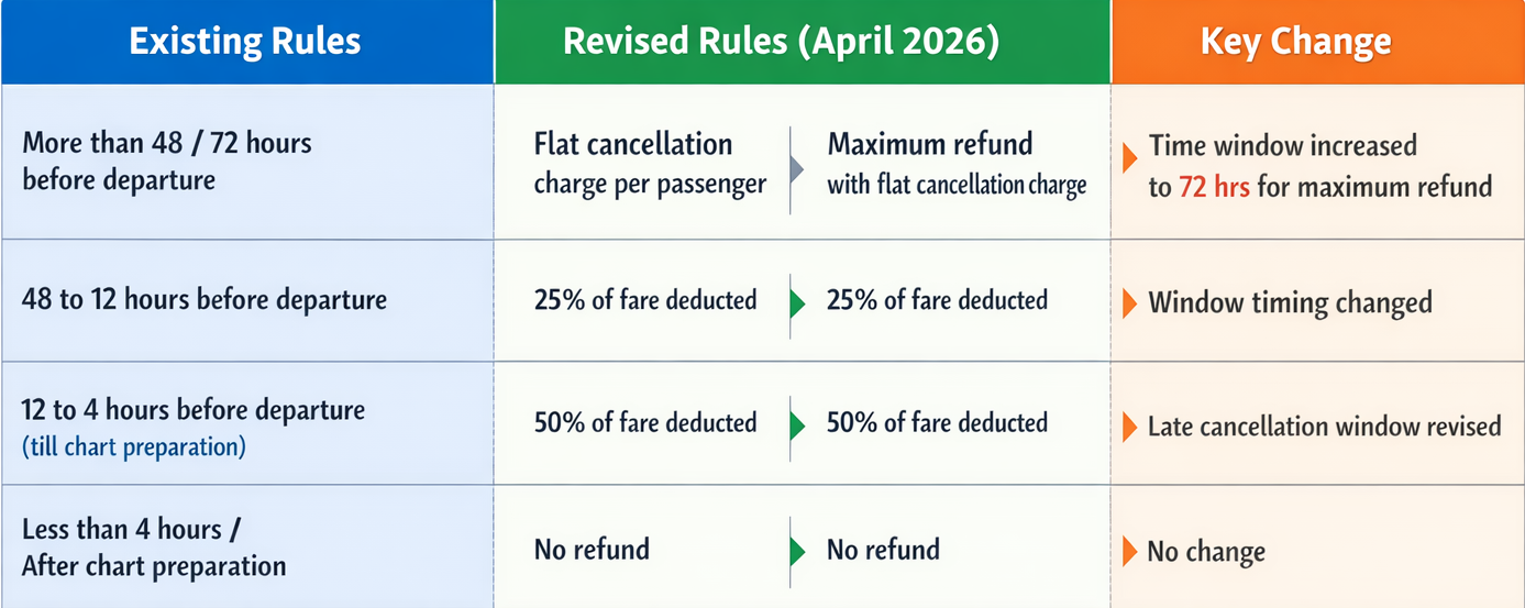 Indian Railways has announced a new set of rules for ticket cancellations, Tatkal bookings, and a few other travel-related things. These changes will roll out between April 1 and April 15, 2026. If you travel by train regularly, it's worth knowing what's changing before it catches you off guard.