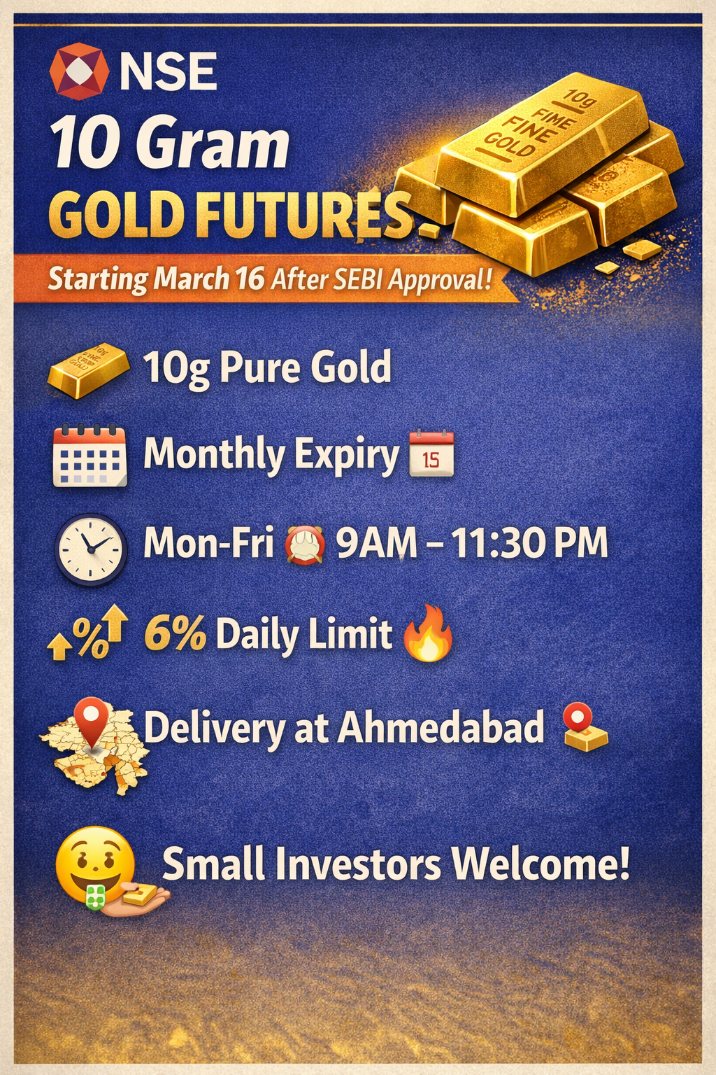 If you've ever wanted to trade gold on the stock exchange but found the contract sizes too large, NSE has something new coming your way. Starting March 16, 2026, the National Stock Exchange will launch a 10-gram gold futures contract in its commodity derivatives segment. Here's a plain-English breakdown of what this means and how it works.